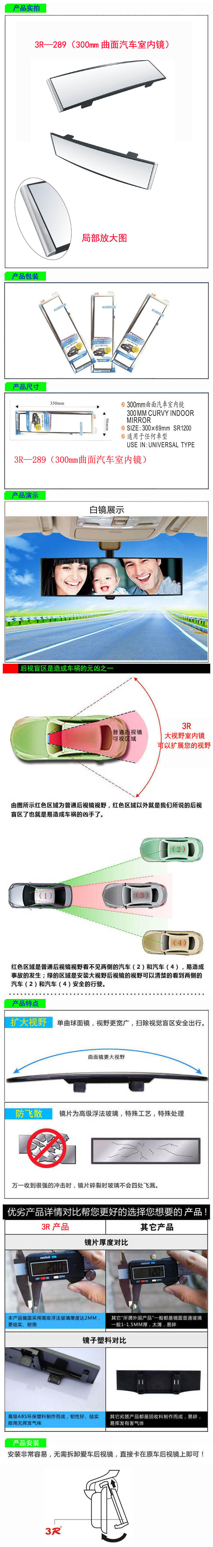 • 型號:   3R—289(300mm曲面汽車室內(nèi)鏡)